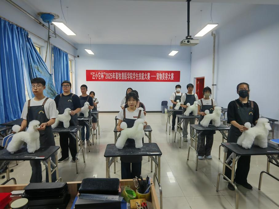 五大赛项亮点纷呈:动物疫病检疫检验大赛聚焦疫病防控实战能力,赛题设计融合国赛及行业技术标准;宠物影像技能大赛将X光与超声技术纳入竞赛体系,以赛题为导向,优化课程模块,实现“课堂-竞赛-岗位”的无缝衔接;动物营养学知识竞赛通过理论笔试检验学生对动物全生命周期营养需求的系统性掌握;小动物骨科技能大赛采用“云端互联+实景直播+现场实操”模式,取得国赛历史佳绩;宠物美容大赛以贵宾犬拉姆装修剪为核心,引入行业标准,实现“假毛练习-真犬护理-岗位技能”三层次融合,为省赛输送优质选手。