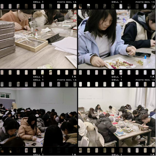 匠心蕴香·草木绘韵——非遗中草药香氛画。首期活动以“非遗中草药香氛画”开启沉浸式体验之旅,同学们在讲解中了解中草药的文化内涵与香氛美学,并以桂枝、艾草、茉莉等天然中草药为素材,搭配干花、香料,将草本之美凝于画框之中。活动现场香气氤氲,同学们在静谧的创作中感受中医药文化与工艺之美交融的独特魅力。
