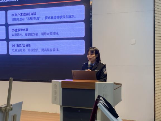 活动伊始,桃李派出所负责人荆警官结合学生群体特点,围绕刷单诈骗、冒充客服、游戏交易诈骗等高校常见案例进行深度剖析,并重点介绍了利用AI换脸、AI语音等实施的新型诈骗手法,提醒师生谨记“不轻信、不透露、不转账”的反诈原则,时刻保持警惕,筑牢思想防线的“安全墙”。