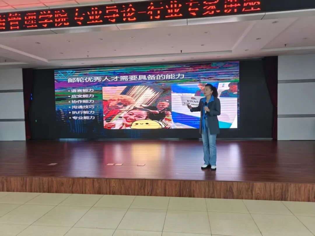 国际邮轮乘务管理专业讲座在3号教学楼235教室举行,教研室主任林晓丽解读行业态势与核心竞争力,着重强调外语沟通、跨文化交际及应急处置能力,鼓励学子以高标准锤炼本领,迈向国际化人才目标。