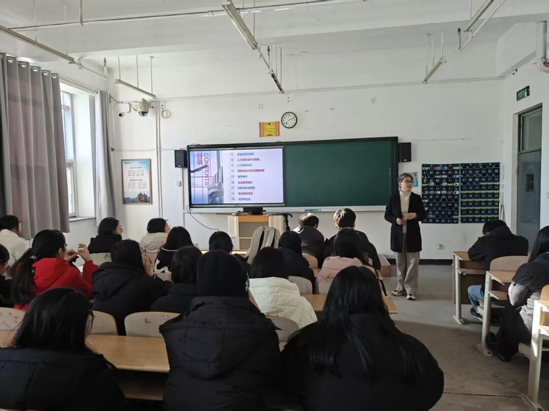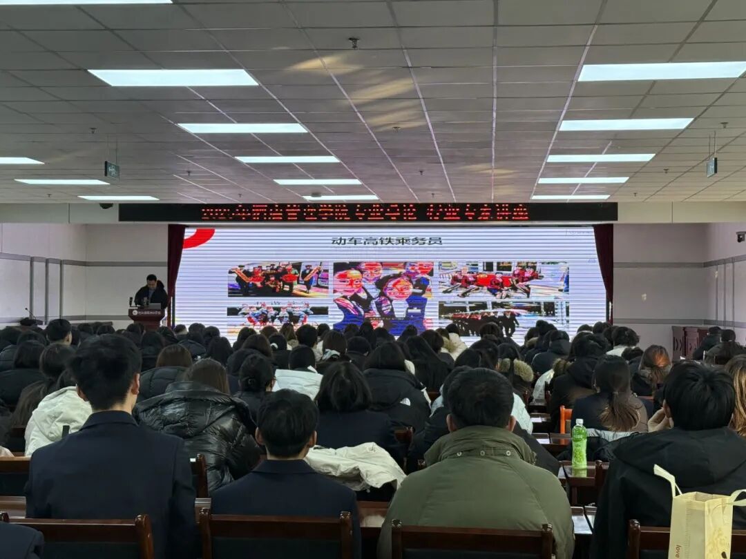 高速铁路客运服务专业讲座在223教室开展,教研室主任王丹丹结合行业现状,介绍课程体系与实训规划,寄语学子坚守服务初心,锤炼技能与礼仪素养,成为高素质高铁客运服务人才。