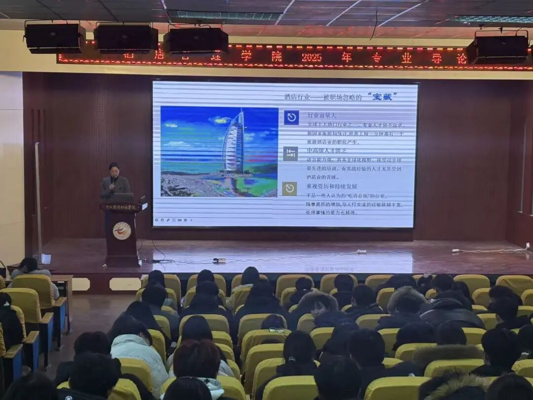 为深入提升专业建设水平,帮助新生明晰专业方向、筑牢学业根基,精准规划职业发展路径,12月24日,我院统筹协调各教研室,围绕酒店管理与数字化运营、民宿运营管理、国际邮轮乘务管理、营养配餐、烹饪与营养、高速铁路客运服务、空中乘务等七大专业,集中开展一系列专业认知讲座。全体新生全员参与,在干货满满的分享中解锁专业密码,汲取成长力量。