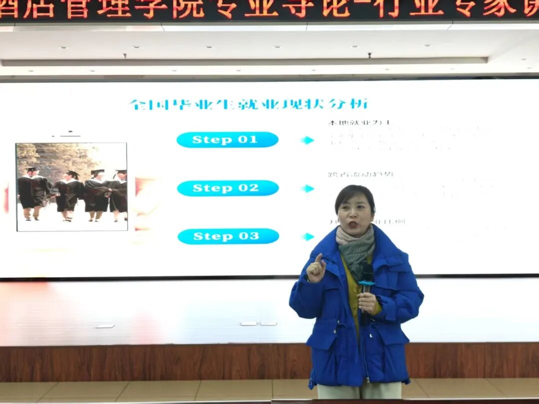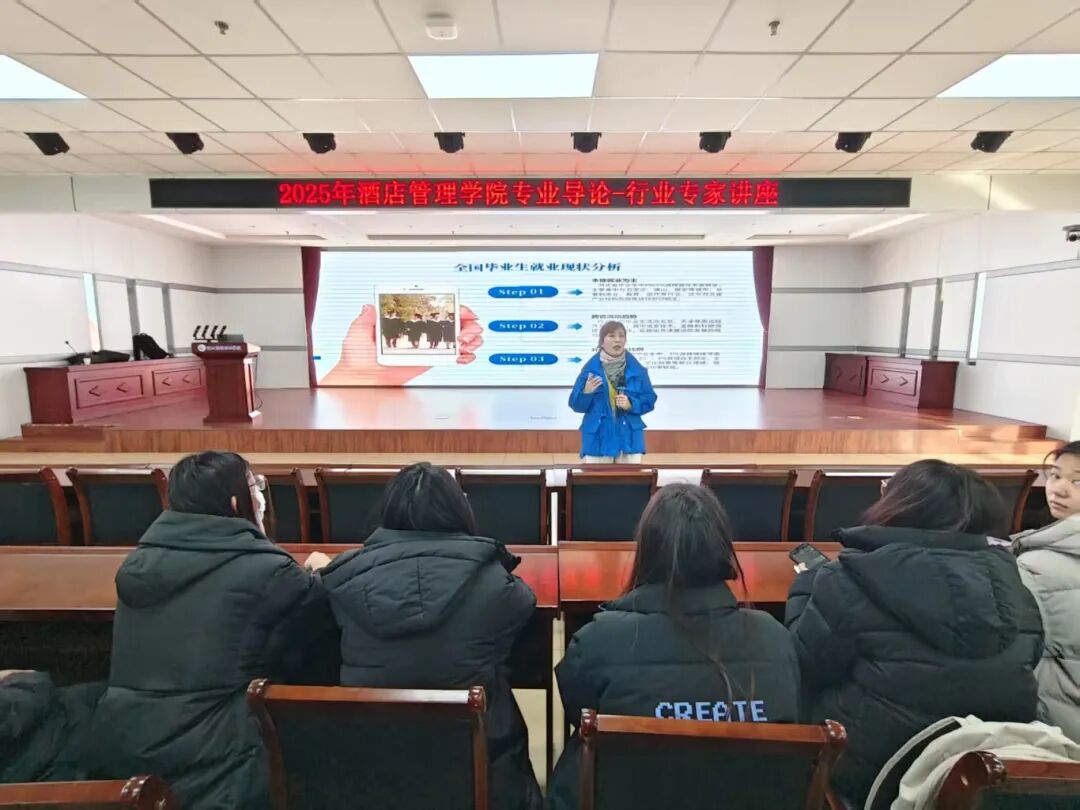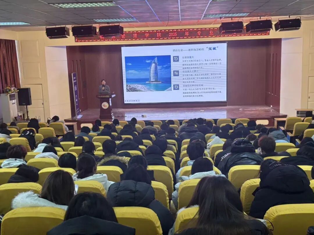 酒店管理与数字化运营专业讲座在3号教学楼一楼报告厅开讲,教研室主任盖陆祎围绕行业数字化转型趋势、核心课程体系展开讲解,强调夯实专业理论、锤炼服务意识与创新思维,助力学子成长为复合型人才。