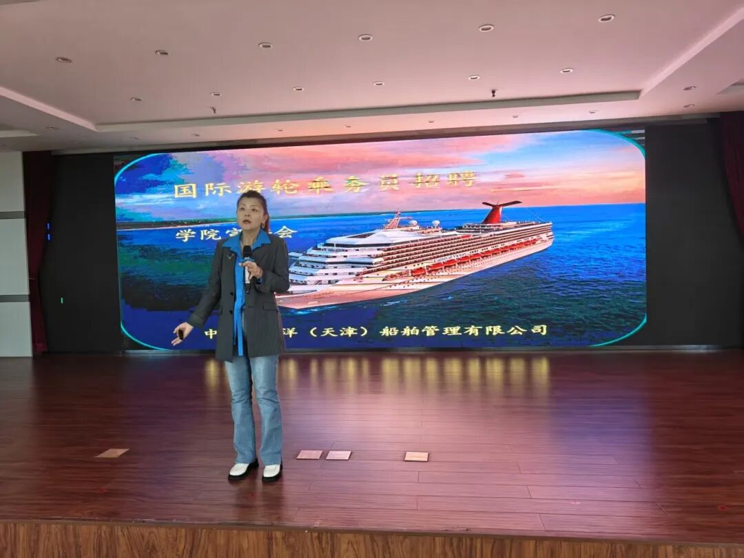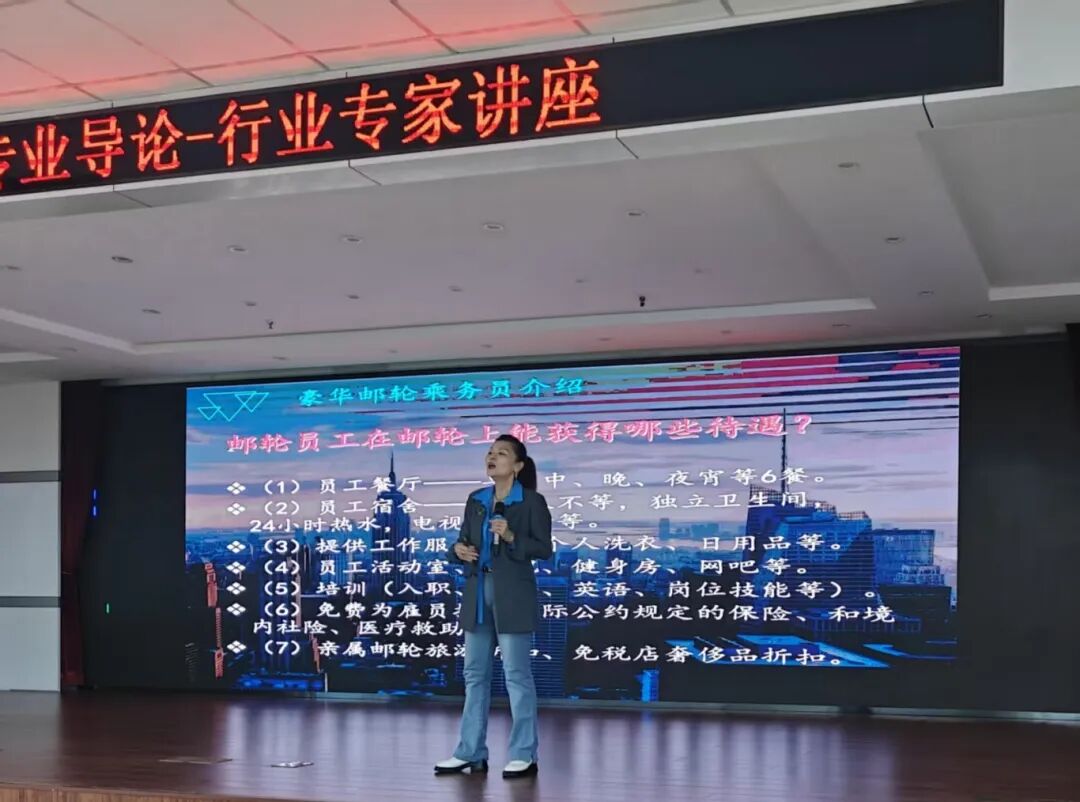 下午14时,各专场讲座接续开展,精彩持续升温。行政楼204会议室迎来中企世华洋船舶有限公司黑瑾女士,结合自身丰富从业经验,深入剖析邮轮领域的职业发展机遇与核心竞争力要点,寄语在场学子:“选择一份职业,既要怀揣纯粹热爱,更要保持终身学习的热情,不断精进自我,才能在行业浪潮中站稳脚跟、行稳致远。”