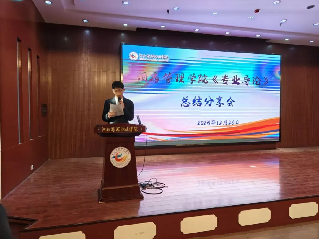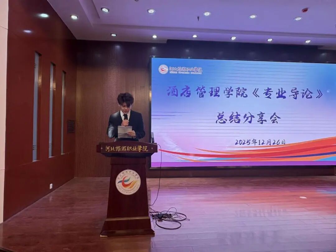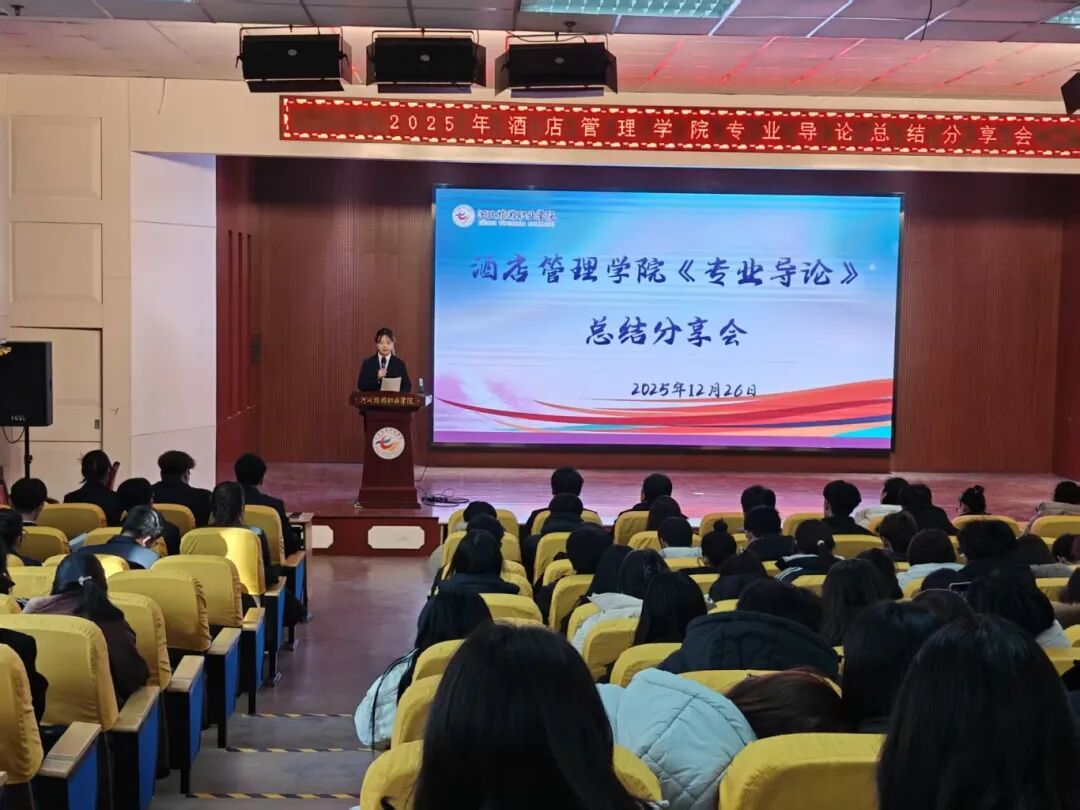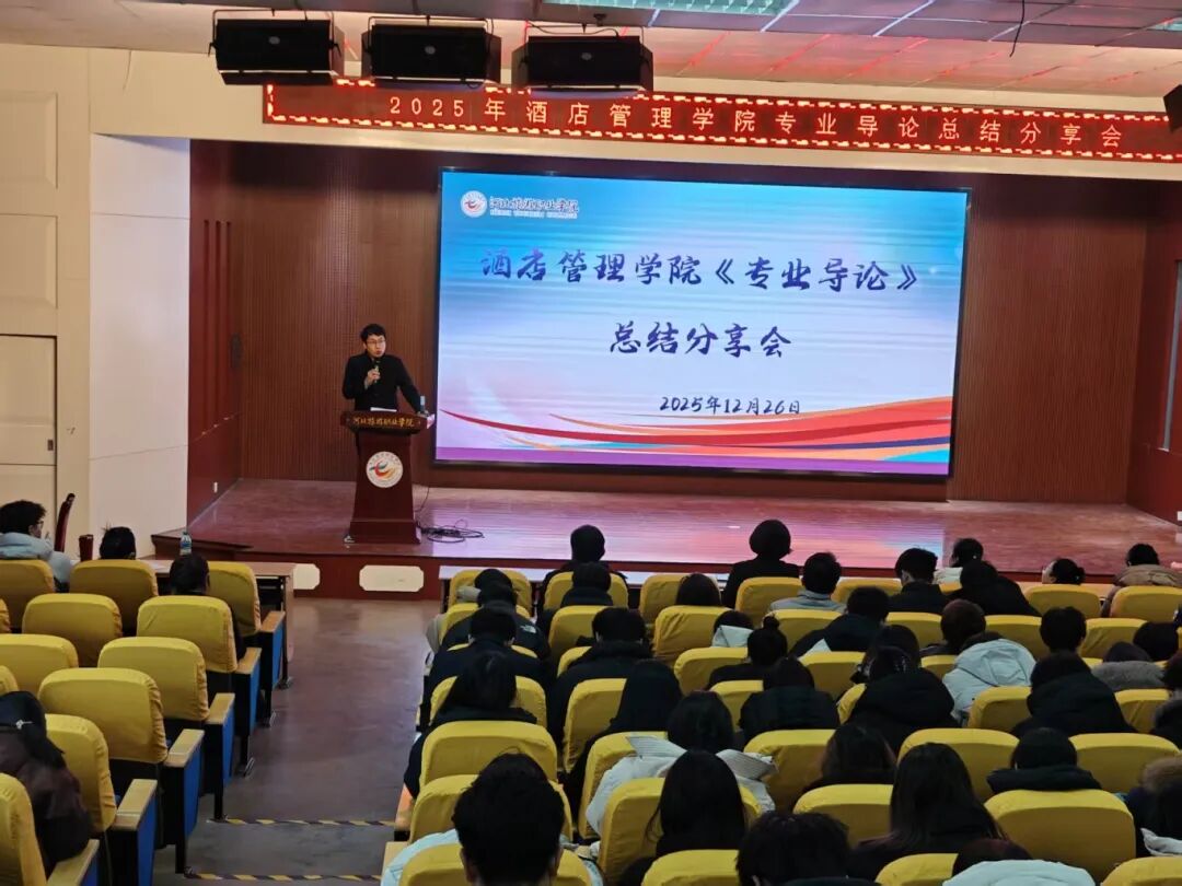 为进一步深化酒店管理学院新生对所学专业的认知,巩固专业导论课程的学习成果,激发专业学习兴趣与动力,2025年12月26日下午两点,酒店管理学院在3号教学楼一楼报告厅隆重举行了2025年专业导论活动总结分享大会。学院全体教师及2025级新生代表参加本次活动。
