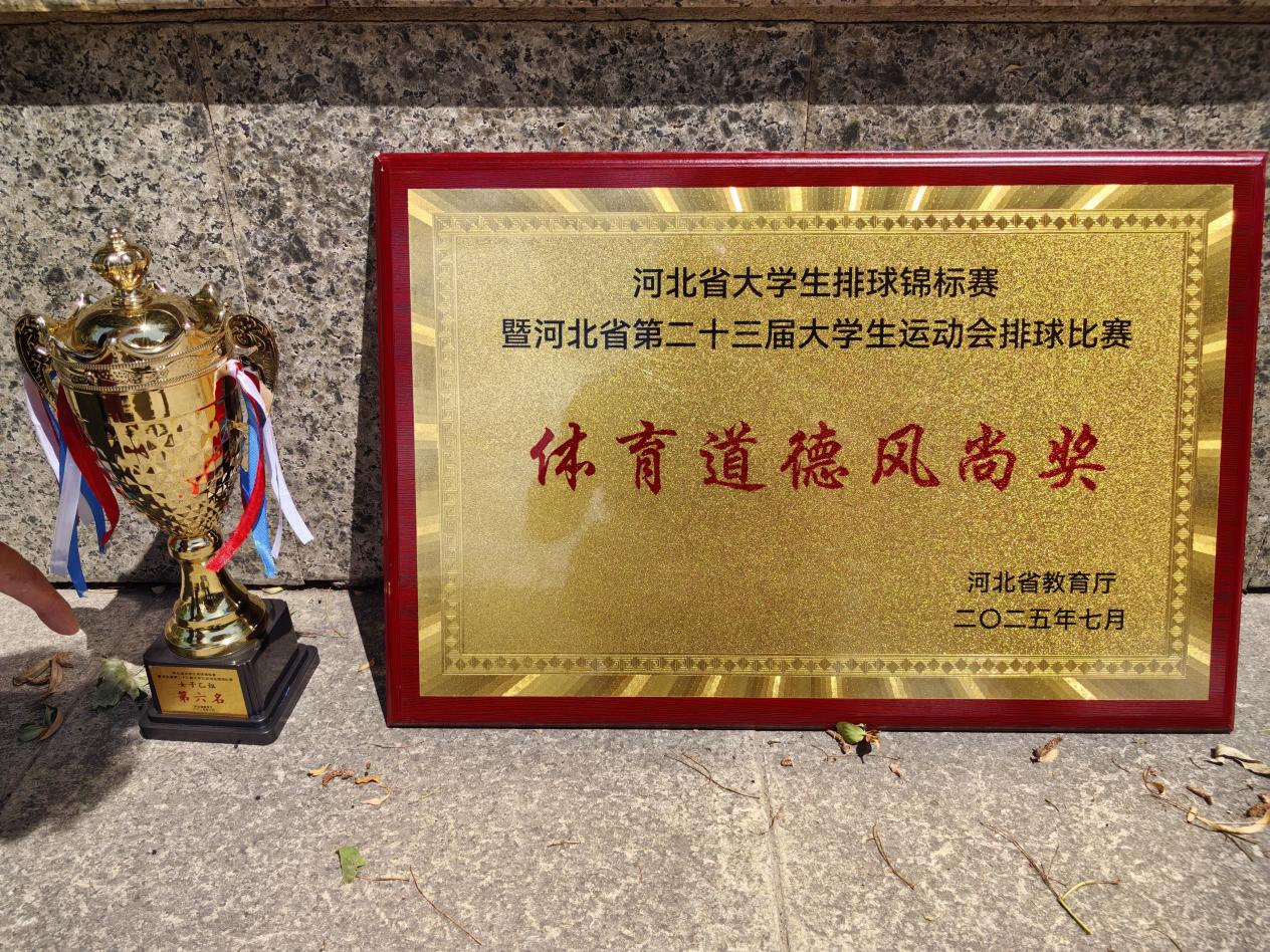 2025年7月12日,由河北省教育厅主办、河北体育学院与河北政法职业学院承办的河北省第二十三届大学生运动会排球比赛在河北体育学院圆满落幕。经过激烈角逐,河北旅游职业学院女子排球队获乙组第六名和体育道德风尚奖的双丰收,为学校赢得荣誉,展现了新时代大学生运动员的拼搏风采。