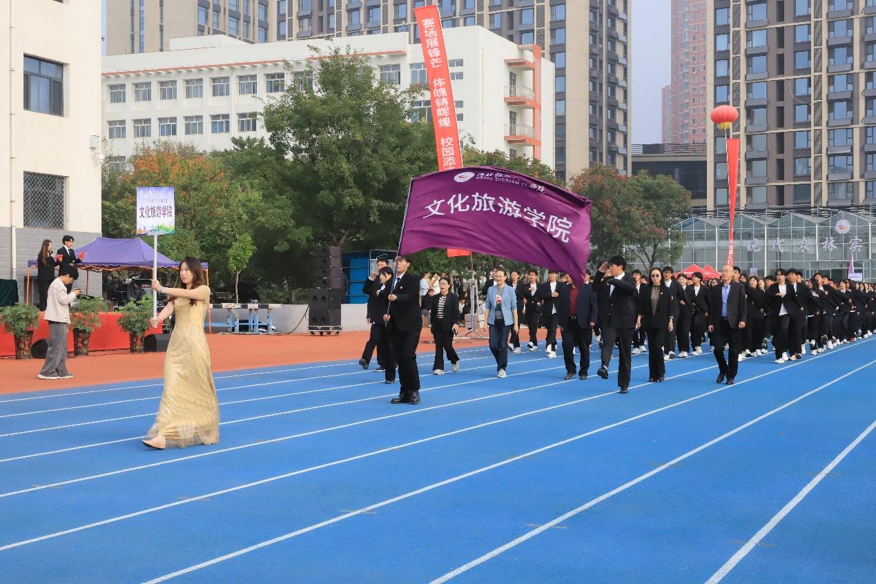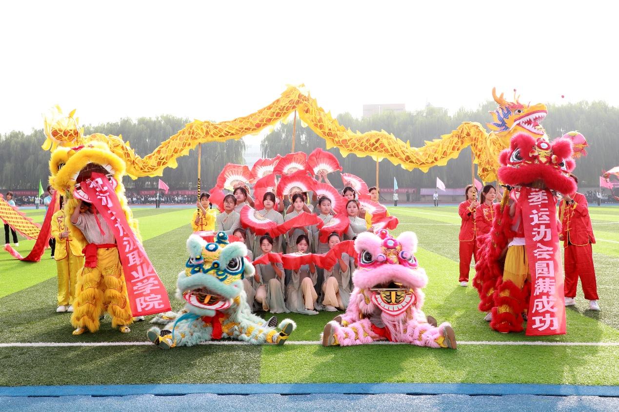 紧接着创意十足的表演点燃全场,文化旅游学院带来的《旗开得胜》,以整齐划一的动作诠释青春活力;酒店管理学院的《龙腾狮跃扇舞华章》表演,将传统文化与体育完美融合,赢得阵阵喝彩。