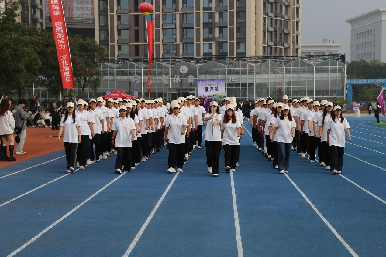 开幕式当天,温暖的阳光洒满运动场,轻轻落在每一位参与者的脸庞,将他们眼中的期待与心底的兴奋映照得格外明亮。伴随着激昂的旋律,国旗护卫队队员身着挺拔制服,迈着沉稳而铿锵的步伐,护送着鲜艳的五星红旗缓缓走向会场中央。这一刻,全场师生自发肃立,目光紧紧追随国旗,用最庄重的姿态致以崇高敬意,爱国情怀在运动场中悄然升腾。紧随其后的是各学院方阵,创意满满的学院特色以及响彻赛场的嘹亮口号,瞬间点燃全场热情。同学们身着色彩绚丽的服装,用昂扬的姿态、饱满的热情,将运动场上的每一个角落都染上了青春的色彩与活力。