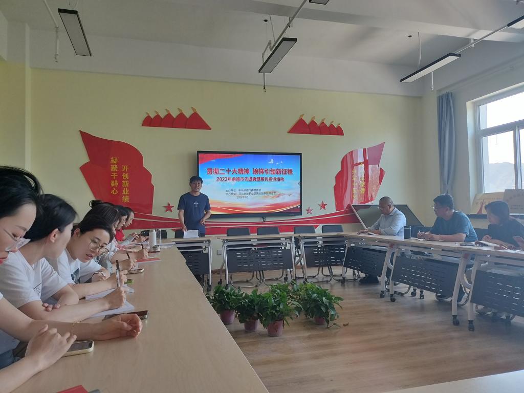 为深入学习宣传贯彻党的二十大精神,发挥典型引领作用,2023年6月6日下午文化旅游学院党总支30余人在3号教学楼党员活动室(312室)开展“贯彻二十大精神 榜样引领新征程”先进典型系列宣讲活动(第三场)。本场由文化旅游学院教师党支部书记主讲。