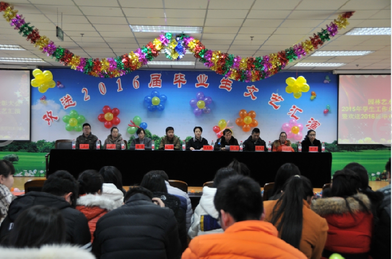 1月7日下午,园艺系在行政楼204召开2015年度学生工作总结表彰大会暨欢送2016届毕业生师生文艺汇演。副院长王慧贤、学院团委书记马立及园艺系全体学管人员出席了表彰大会。