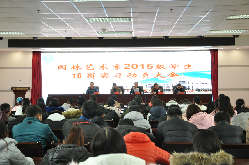 2017年11月7日下午,园林艺术系在润泽楼204会议室召开2015级学生顶岗实习动员大会。参加动员大会的的有园艺系领导班子成员、2015级辅导员和240名参加顶岗实习学生,会议由副书记李国强主持。