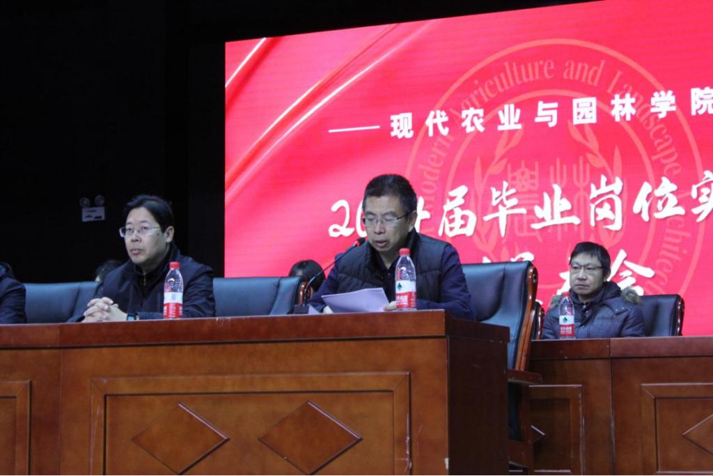 为扎实做好2024届毕业生实习就业指导与服务工作,帮助学生了解就业形势,抢抓就业机会,提高就业竞争力,我院于11月8日在大学生活动中心召开2024届毕业岗位实习动员大会。学校副校长温守东、农林学院党总支书记王乐为、院长崔海明、党总支副书记魏奎、团总支书记万良磊老师、各专业教研室主任、2021级各班辅导员及2024届全体毕业生参加了大会,会议由党总支副书记魏奎主持。