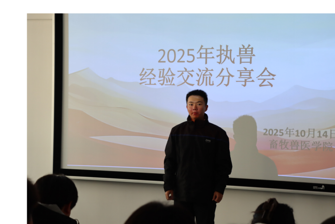 畜牧兽医学院于2025年10月14日在602教室成功举办了执业兽医资格考试经验交流分享会。为了帮助畜牧兽医专业学子更好地备战执业兽医资格考试,明确备考方向,汲取成功经验。同时表彰今年在执业兽医资格考试中取得优异成绩的同学。