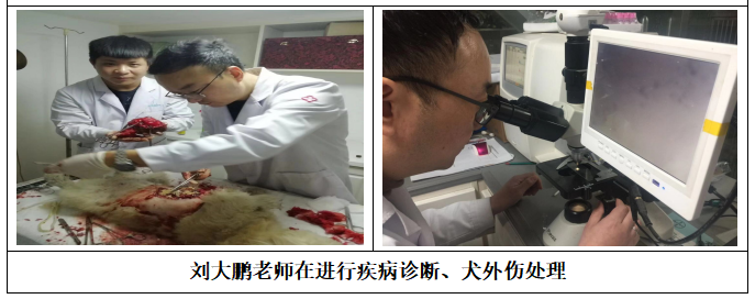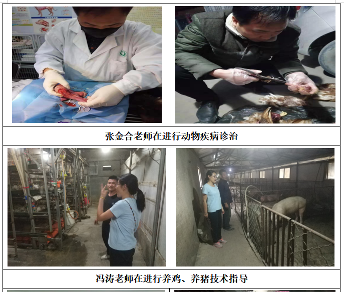 技术服务情况:牧医系李彦猛老师为养猪户进行疾病诊治累计400多例;张金合老师为肉鸡养殖户提供技术指导累计20户;进行宠物病诊治376例,;黄雷老师为宠物犬猫完成剖腹产手术60例,犬猫去势术77例,疾病诊治190多例;梁玉山老师为宠物犬猫进行驱虫99例,疫苗注射138例;疾病诊治200多例;刘大鹏老师完成宠物外科手术79例、进行宠物救治达207例;全年牧医系专业教师为畜禽养殖户和宠物爱好者进行动物诊疗服务,全年累计完成1843例。