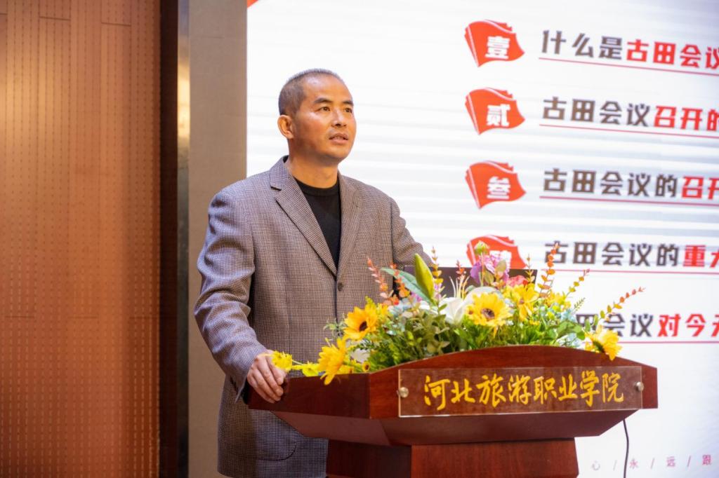 为进一步推进学习贯彻习近平新时代中国特色社会主义思想主题教育走深走实,感悟革命精神,传承红色基因,12月21日下午,在学术报告厅,艺术设计学院党总支书记韩余以《古田会议》为主题,为艺术设计学院师生讲授本学期党课系列的第二讲。艺术设计学院全体教师党员、学生党员、发展对象、入党积极分子及递交了入党申请书的同学参加了本次党课的学习。艺术设计学院院长魏群主持本次党课。