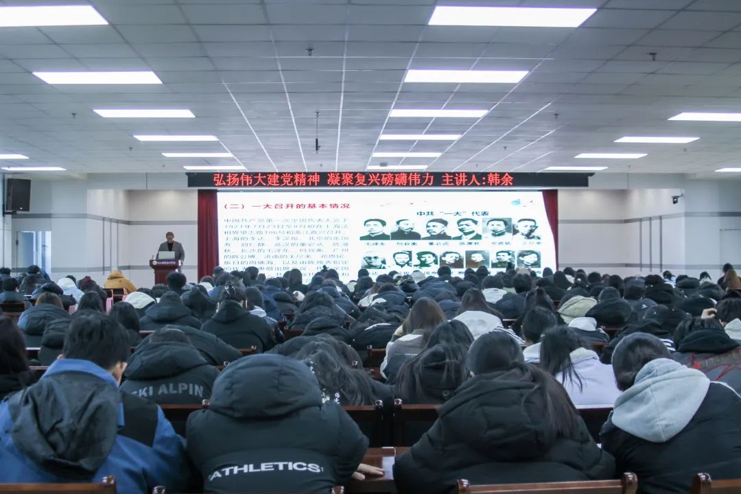 韩余书记从“中共一大的召开”“什么是伟大建党精神”“伟大建党精神的丰富内涵”“伟大建党精神的时代价值”“弘扬伟大建党精神的实践路径”五个方面展开讲解,深入分析了伟大建党精神的形成背景与发展历程,从早期共产党人秉持“坚持真理、坚守理想”信念,勇于探寻救亡图存之路,到历经无数艰难险阻,始终“践行初心、担当使命”,为民族复兴与人民幸福不懈奋斗;讲述了在残酷斗争岁月里,共产党人“不怕牺牲、英勇斗争”,前赴后继谱写为国为民壮丽诗篇,彰显出“对党忠诚、不负人民”的赤诚情怀。