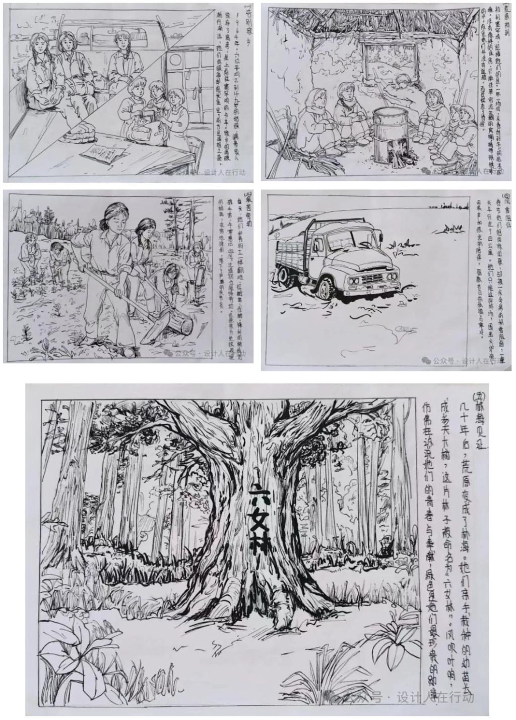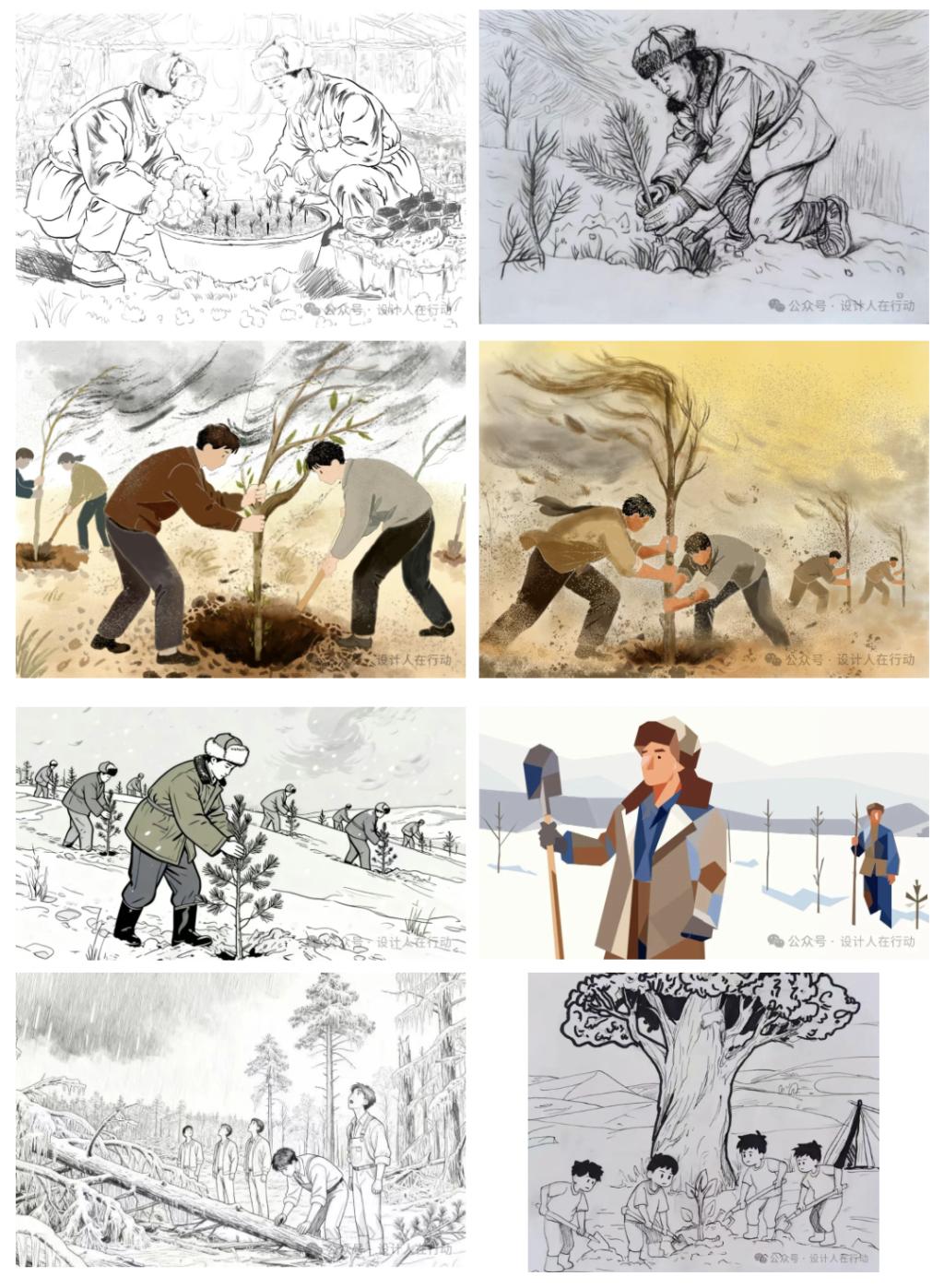作品定格了顶风冒雪、对抗灾害的震撼场景。极端环境中,第一代务林人用身体与意志守护希望,诠释了何谓“艰苦创业”。