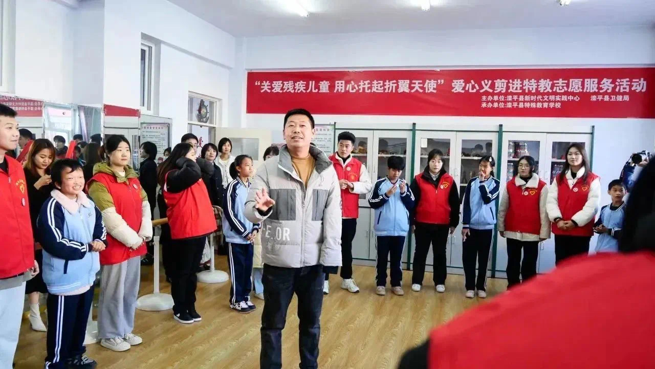 为发扬“奉献、友爱、互助、进步”的志愿服务精神,提高大学生的社会服务意识和社会责任感,11月17日下午,艺术设计学院“设计人在行动”志愿服务队来到滦平县特殊教育学校,开展“七彩画笔,筑梦童心”新时代文明实践志愿服务活动。河北旅游职业学院宣传部副部长袁丽伟、滦平县国教办副主任叶阳、艺术设计学院党总支书记韩余和30余名师生志愿者参与了本次活动。