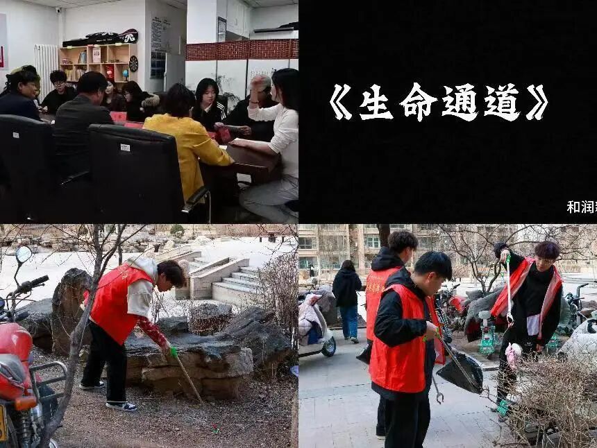 艺术不仅是美的表达,更是责任的践行。在“非遗传承进校园”公益支教行动中,师生志愿者们走进滦平县虎什哈镇中心小学,以“二十四节气”为主题开设剪纸课堂。孩子们在指导下剪出一幅幅生动的作品,非遗技艺的种子悄然播撒;“艺润社区”行动中,学生与润园社区共同完成消防安全主题话剧《消防通道》的创作、演出与拍摄,用专业与创意传递安全知识,以艺术赋能社会治理;同时,志愿者们深入社区开展生态美育行动,清理环境、美化社区,以实际行动诠释新时代青年的责任与担当。