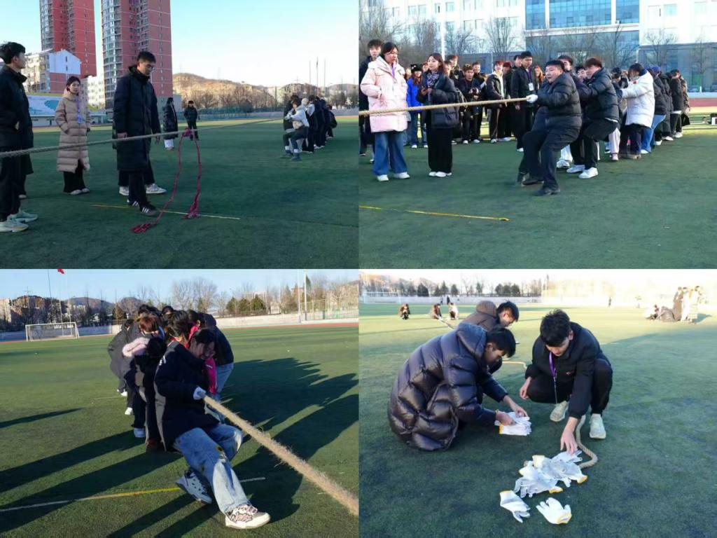作为压轴项目,“趣味拔河挑战赛”创新推出“半盲式”对决。蒙眼拔河不仅考验力量,更考验信任与指挥的默契。同学们在黑暗中倾听指令、协同发力,用集体的力量向终点靠近。这一刻,看不见的是方向,看得见的是彼此心中共同的目标与信念。