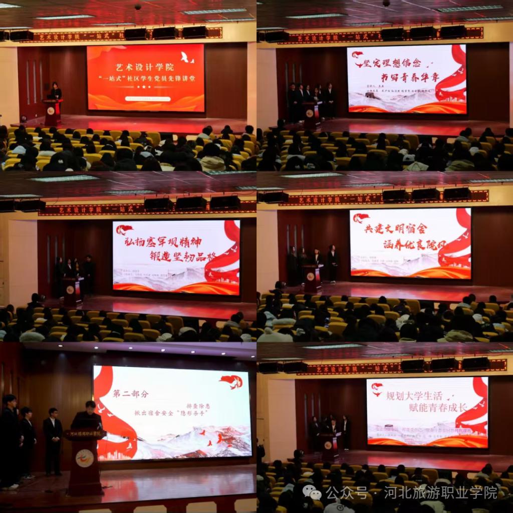 为深入推进“一站式”学生社区建设,强化党建引领,发挥学生党员先锋模范作用,2025年12月30日,艺术设计学院在学术报告厅成功举办“青春心向党,‘宿’造新风尚”“一站式”学生社区党员先锋讲堂活动。学院辅导员代表、学生党员、入党积极分子及大一全体学生参加活动。活动以微党课为载体,讲述青春故事,凝聚宿舍文化,营造积极向上、文明和谐的社区育人氛围。